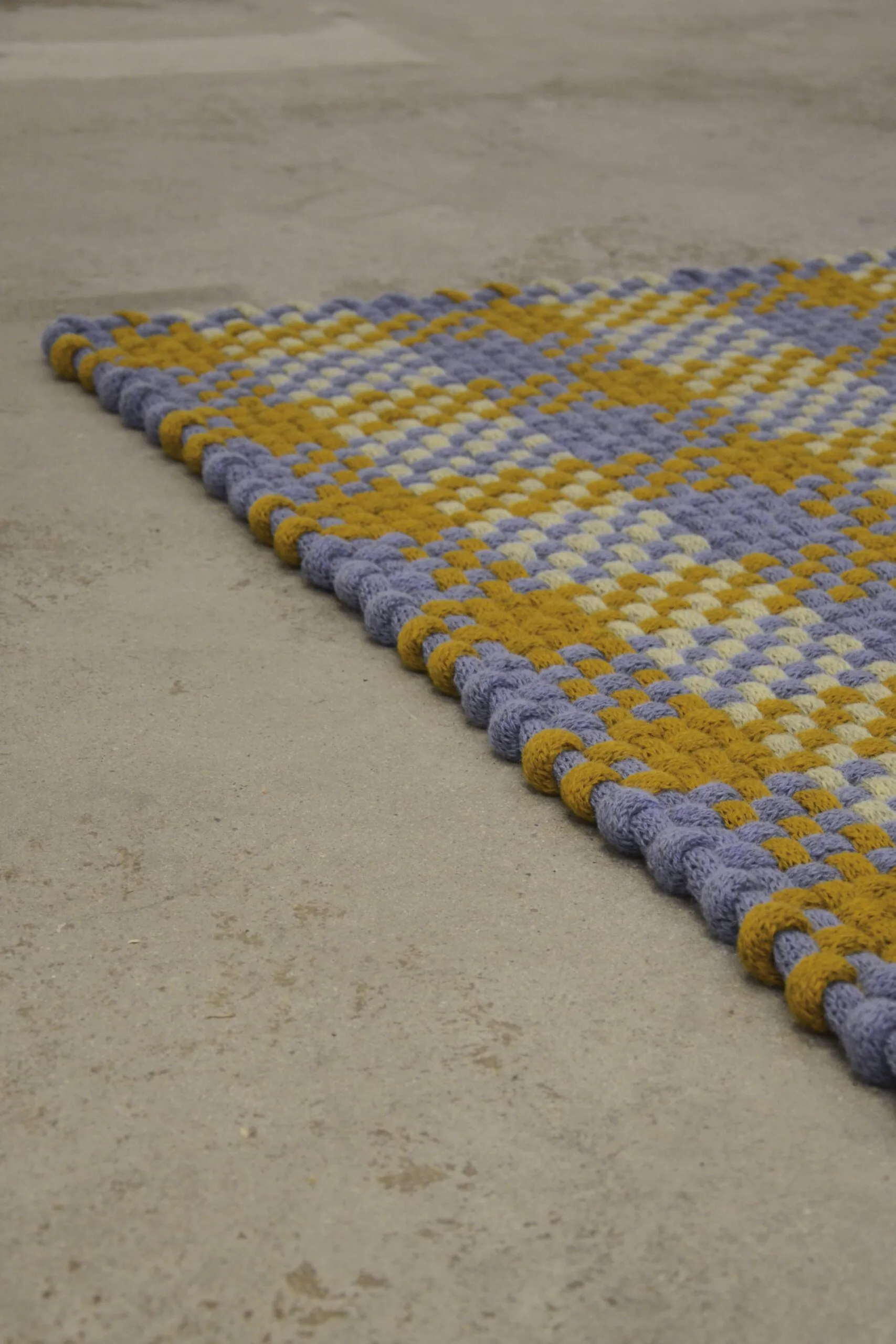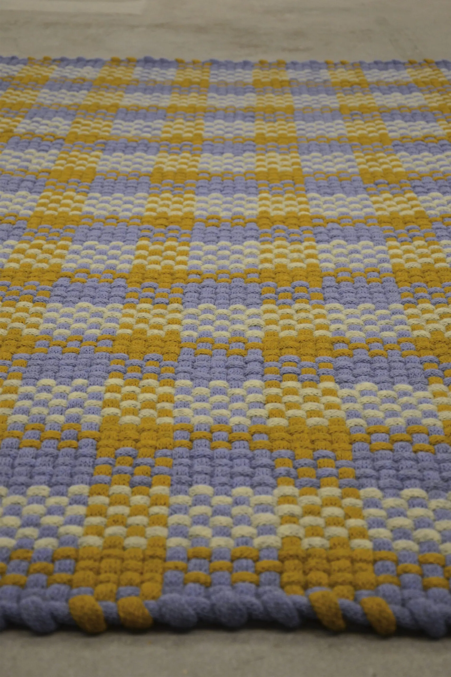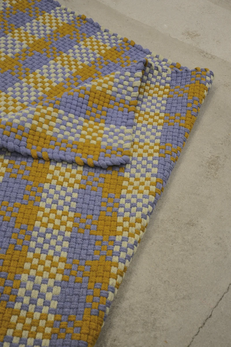 The rugs are knitted and then woven on a custom made frame, handmade in the designer’s own studio.