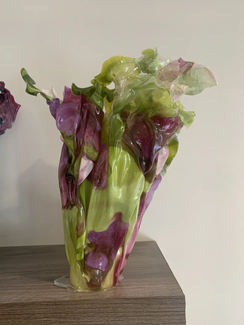 Caroline Zimbalist is an artist and designer who hand creates one-of-a-kind works using nontraditional processes and techniques, sculpting bioplastic and natural materials into three dimensional forms. Artistic home decor such as tabletop planters and lighting sculptures that conjure the appearance of textiles frozen in time. Each one-of-a-kind piece is inflected with biomimicry to emphasize nature’s dominance. She’s studied painting, illustrating and sculpting since she was four and further discovered a love for avant-garde design while studying abroad at Central Saint Martins, London. Caroline earned a Bachelor of Fine Arts in Fashion from Parsons School of Design and currently works as a designer at a NYC based clothing line.