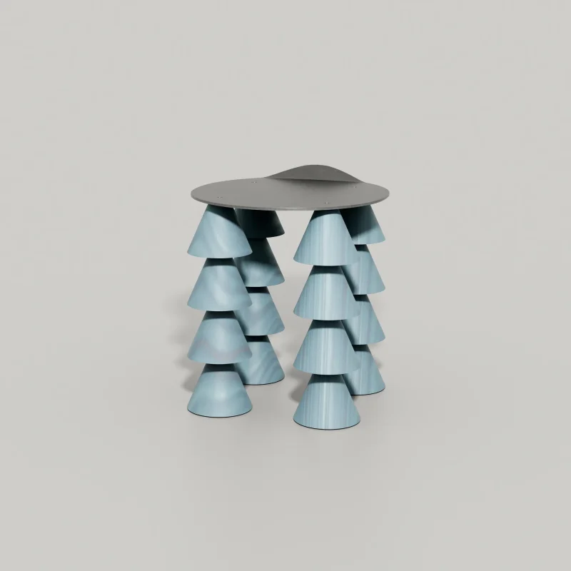 Crafted with a commitment to quality and longevity, the collection is timeless. Produced in the studio’s atelier, it involves skilled local artisans, showcasing their craftsmanship. The stools are made from Brazilian Tauari wood, shaped by hand and colored in a serene sky-blue hue. The satin finish comes from a low VOC blend of wax and oil, while the seats are made of carefully shaped and bent steel.