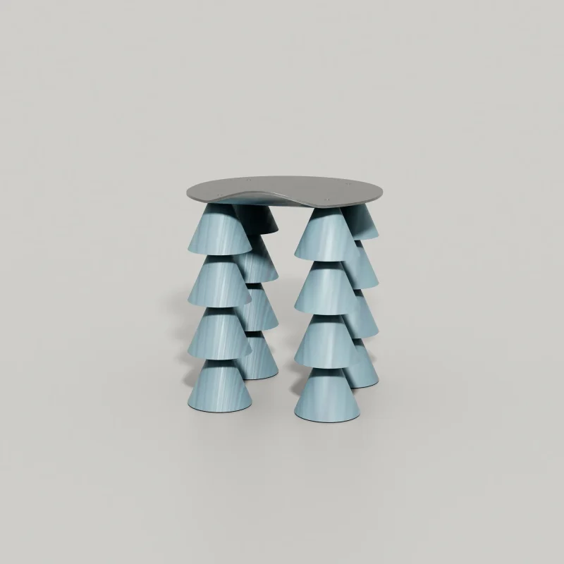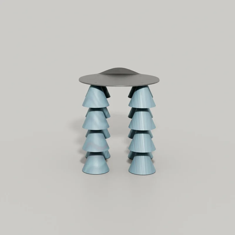 Featuring metal structural axles that enhance the union and strength between the legs and seat, the N2 stool is not just a piece of furniture but a fusion of art, durability, and playful charm.