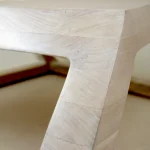 The N4 coffee table by Aaron Scott in bleached cherry features a top that tapers as it rises up from its base, while at the same time rotating 20 degrees. This complex twist on a simple geometrical concept is made possible by careful, labor-intensive engineering.
