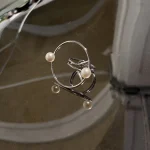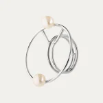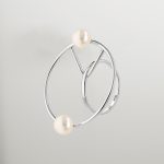 Pure geometric figures build elegant jewelry; silver lines and a circle at the top contain the pearl. The final result is a lightweight design out of 925 sterling silver and natural pearls, a solid, gracefully sustainable material.