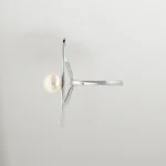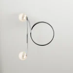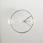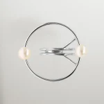 “Na Linii” is a piece of striking and sculptural jewelry, notable for its distinctive sphere-shaped center. Its lines and pearls seem to float in space weightlessly.