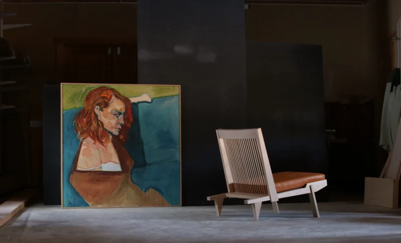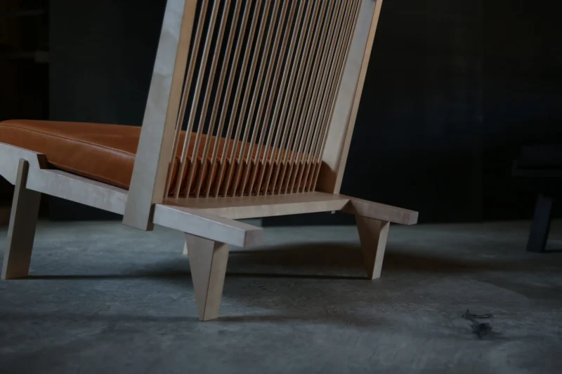 “Næss” is a chair so low that you can see straight into the fireplace. Certainly with a book and low shoulders. The back consists of 20 stiles, which are mounted floating so that the chair adapts to the sitting position. The stiles give the chair a light and airy look, which balances the robust frame. The chair is treated with furniture wax, this provides a soft and natural shine and leaves a natural tactile surface. It looks good and is good for the environment.
