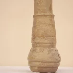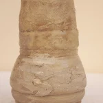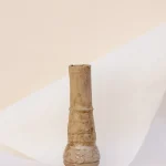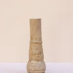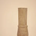 The Naiaides 3 by Volupte Studio presents a strikingly minimalistic design with a strong emphasis on texture and form. The piece has a tall, cylindrical shape that narrows slightly towards the top, creating a subtle sense of elongation. Its surface is rough and uneven, showcasing a natural, earthy beige tone that evokes a raw, organic aesthetic. The vase’s texture is accentuated by small ridges and irregularities, giving it a weathered, almost ancient appearance. The base is slightly wider and features gentle, layered contours that add a grounding element to the otherwise slender form. This vase is a perfect example of understated elegance, making it an ideal piece for those who appreciate simplicity and natural beauty in their decor.