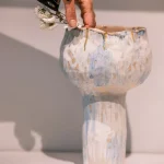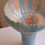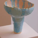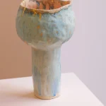 Hania Jneid’s intuitive experimentation with naive aesthetics and techniques results in this unique stoneware vase, blending an intriguing mix of patterns and textures. Handbuilt and hand glazed, each piece reflects the artist’s creative process, driven by surprise and discovery.