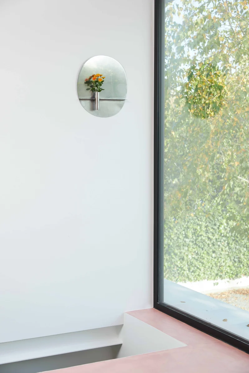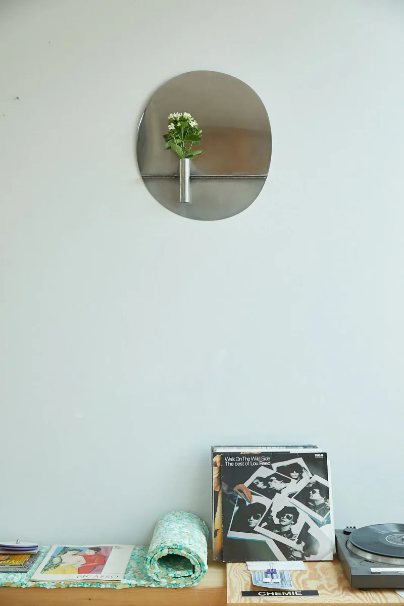 Embrace the timeless elegance of Narcissus, a stunning piece inspired by the classic mirror often found in the grandeur of old-world homes. This exquisite creation by Anto Loua features a delicate shelf and vase, reminiscent of the charming mantelpieces that frame these timeless mirrors. With its organic shape and use of raw materials, Narcissus effortlessly blurs the lines between feminine and masculine, making it a versatile and captivating addition to any space. Hand-polished to perfection, the aluminum or steel elements of Narcissus offer a fleeting reflection, inviting imperfection and sparking the imagination. Complete with the addition of fresh flowers, Narcissus becomes a multi-sensory experience, infusing vibrant colors and delightful scents into the sturdy frame of this exquisite mirror. Elevate your surroundings with the enchanting allure of Narcissus, a true masterpiece that seamlessly marries form and function.