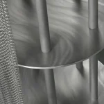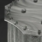 The mesh curtain, suspended by exposed bearings, functions as a delicate shroud, evocative of a snake’s shed skin. This layered duality speaks to broader themes of containment, transformation, and cyclical renewal, drawing connections between natural and constructed realms.
