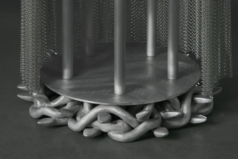 Beyond its functional role as a bar cabinet, the Natrix Natrix piece operates as a sculptural provocation — a meditation on the act of containing, concealing, and revealing, questioning what lies within and what remains hidden beneath the surface.