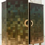 passes the stitching stage, where the texture of the wood appears. In our workshop, the straw goes through a staining stage, after which it is inlaid with the cabinet itself.
