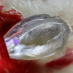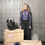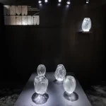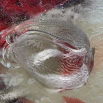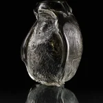 The Nava series again relates to environmental themes, which Anna Jožová has been dealing with in her work for a long time. The inspiration was again the environment of New Zealand, where the artist completed an artistic internship in 2021 and whose fragile biodiversity is affected by a number of imported invasive species of natural plants. These vases are the first pieces to be created using a special liso-blown glass technique. The three-piece mould is made from a special high-temperature resistant material, making it reusable, and its embossed surface is sculpted with decals of details of marine life. The iridescent effect of the vases is the so-called iris, which is first applied as a powder to the surface of the vases and then sealed.