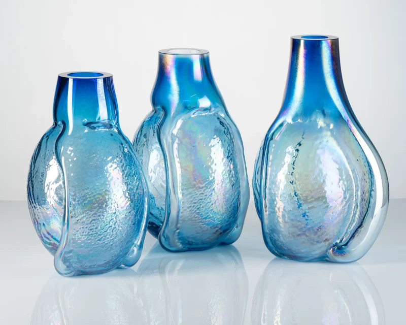 Since 2018, Anna Jožová has been creating a series of original vases, always responding to a currently explored theme. Some of these series are therefore partly related to each other, thus shifting the artistic and technological approach to new positions. Her most important creative theme so far is a reflection on the impact of human intervention on the environment, which she addresses, for example, in the Gaia, Keto and Nava series. At the same time, Anna Jožová's work is able to look back with a certain amount of humour at some moments of our everyday life (the Coquettes series, the Lisa vase, Hangover) and in some cases her work is almost a philosophical meditation on the existence of man and his connection to a certain time and place (the Kairo series, Chrono)
