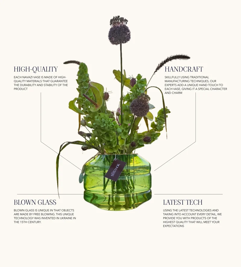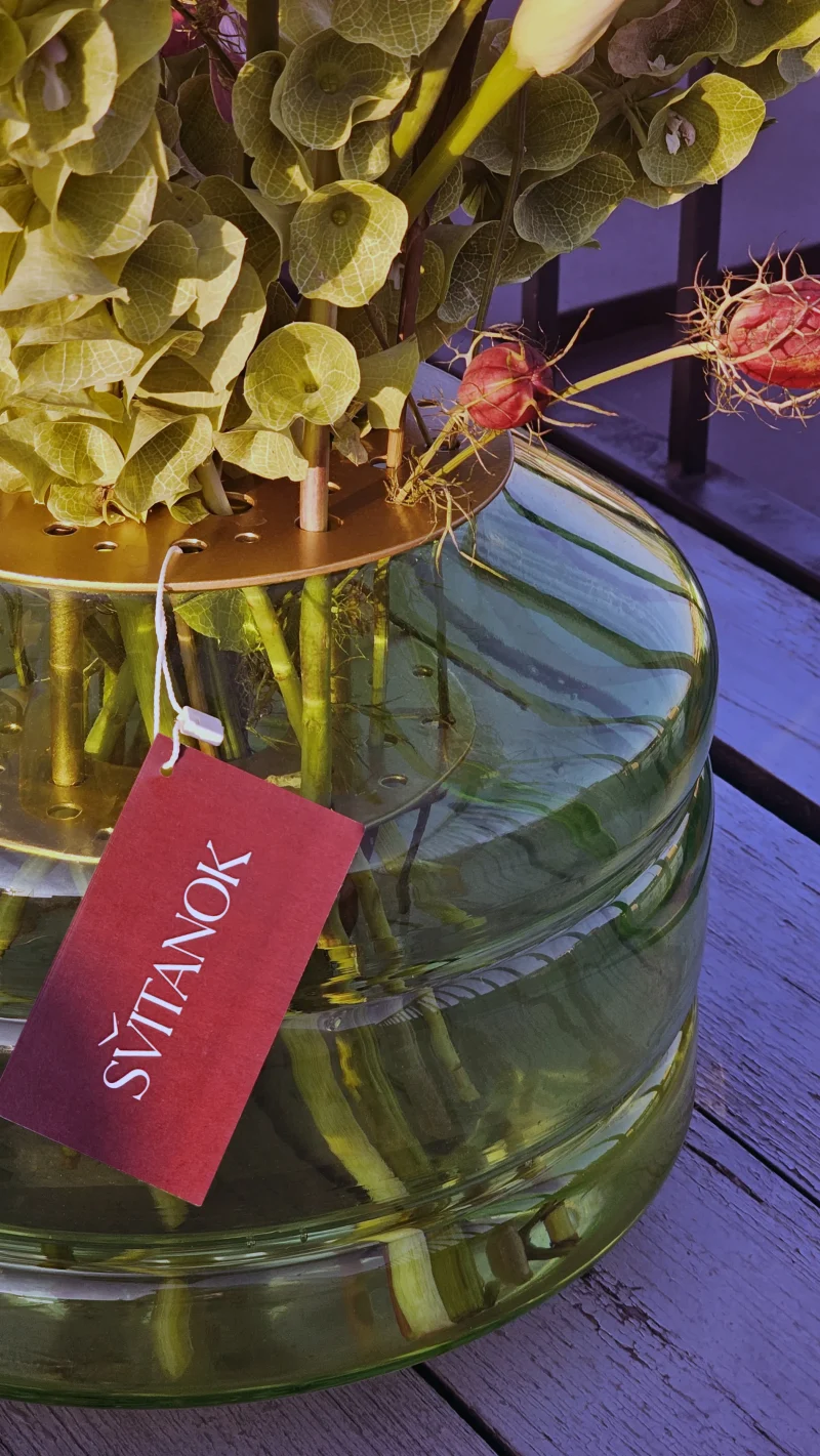 In the realm where artistry meets simplicity, this handcrafted blown-glass vessel by SVITANOK embodies the essence of modern minimalism. The orb-shaped design, crowned with a precision-crafted stainless steel cap, creates a perfect harmony between form and function. Each piece is unique, bearing subtle marks of its artisanal creation process.