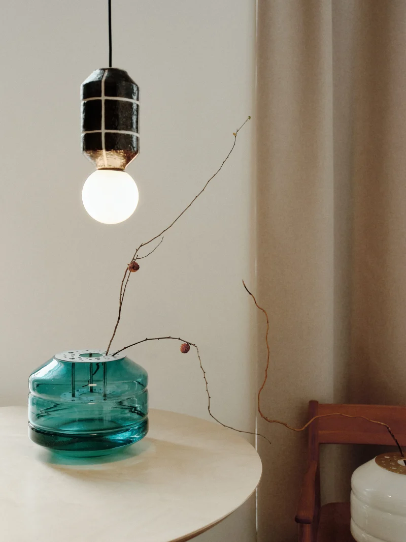 This beautiful collection NAVAZI combines contemporary design with traditional craftsmanship. The light fixture features hand-blown glass orbs of different sizes, suspended from an elegant ceramic or glass base. The orbs are available in various finishes and textures allowing you to choose the perfect color to match your decor.