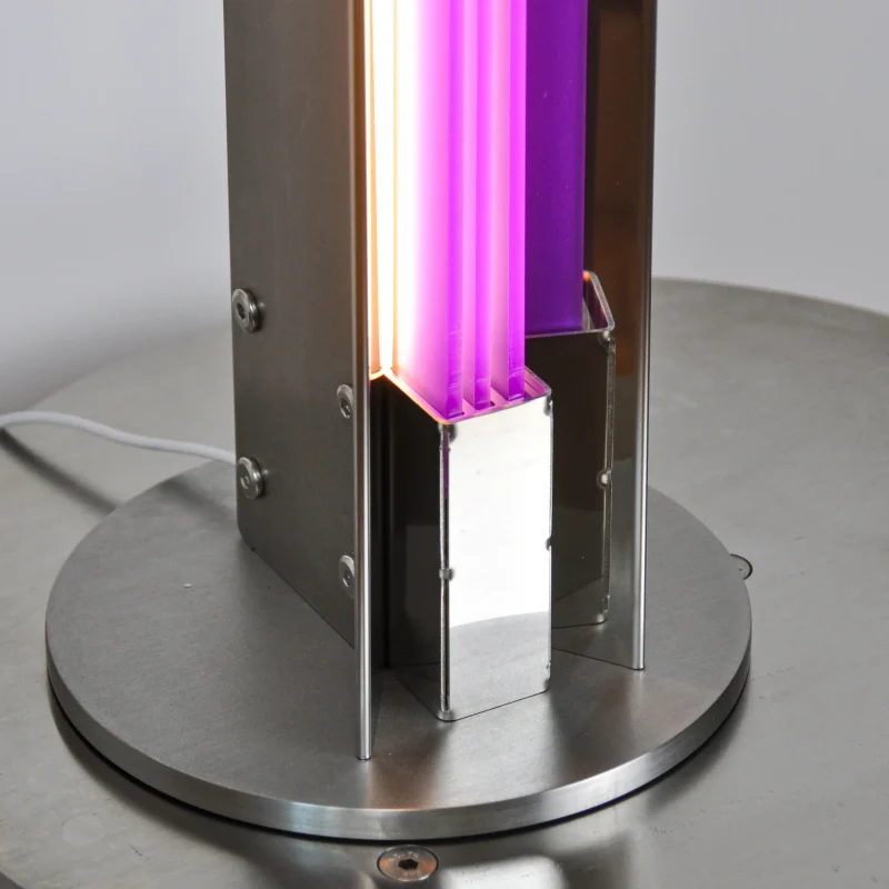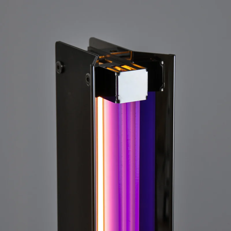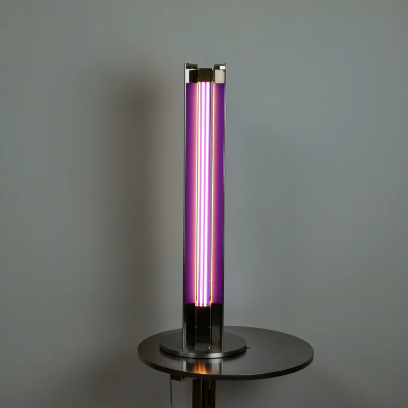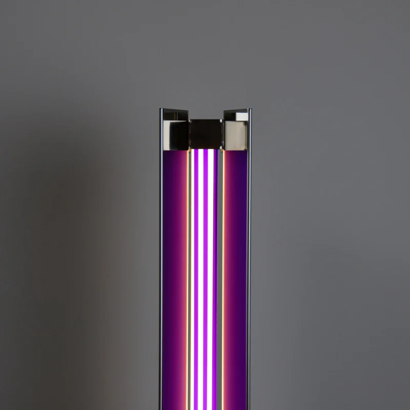 The Ne600 Lamp by MLK Furniture was inspired by the vibrant nightlife and widespread use of neon lights in the city of Bangkok. After spending seven years immersed in this “neon paradise,” Arthur, the designer behind MLK Furniture, aimed to elevate a common industrial lighting system into a unique decorative object. Upon returning to France, he established his own workshop to personally produce his designs. The lamp features a lighting system encased between metal sheets and acrylic diffusers, resulting in a hybrid design that is both functional and elegant, blending industrial and artisanal elements.