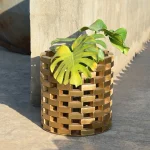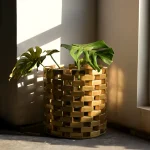 With its gleaming brushed gold finish and interlocking design, it creates a striking geometric silhouette that’s as bold as it is beautiful. Whether it’s cradling your favorite fern or adding a touch of green to your living room, this planter brings a strong foundation of sophistication to any space.