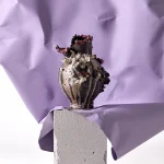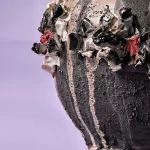 Ceramic vessel for water use, made from black high-temperature clay with porcelain details, various glazes.
