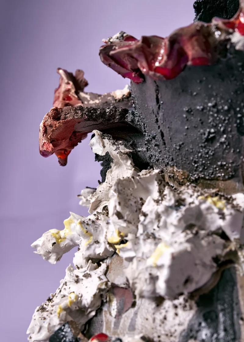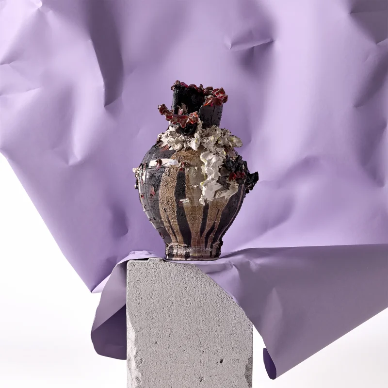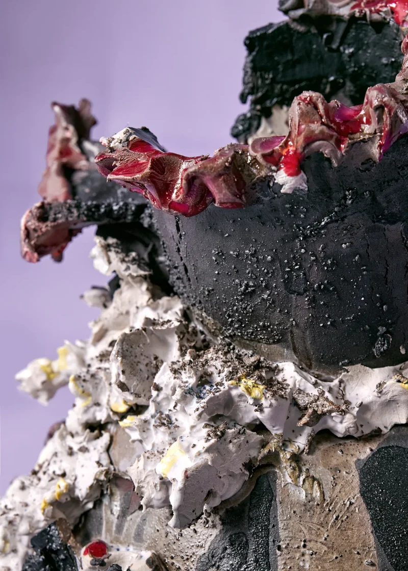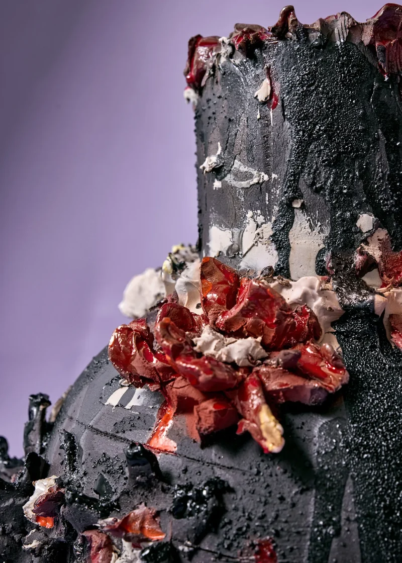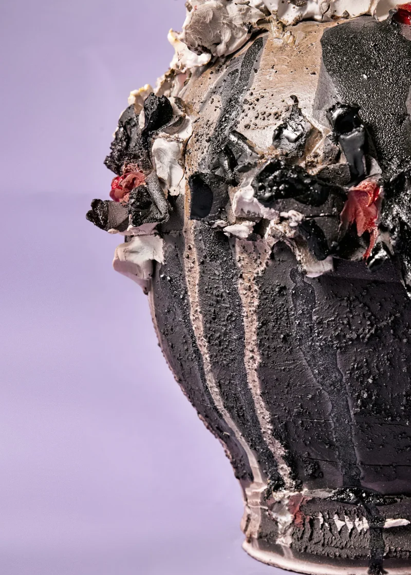 Ceramic vessel for water use, made from black high-temperature clay with porcelain details, various glazes.