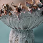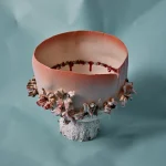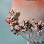 Ceramic vessel for water use, made from white stoneware clay with porcelain details, various glazes.