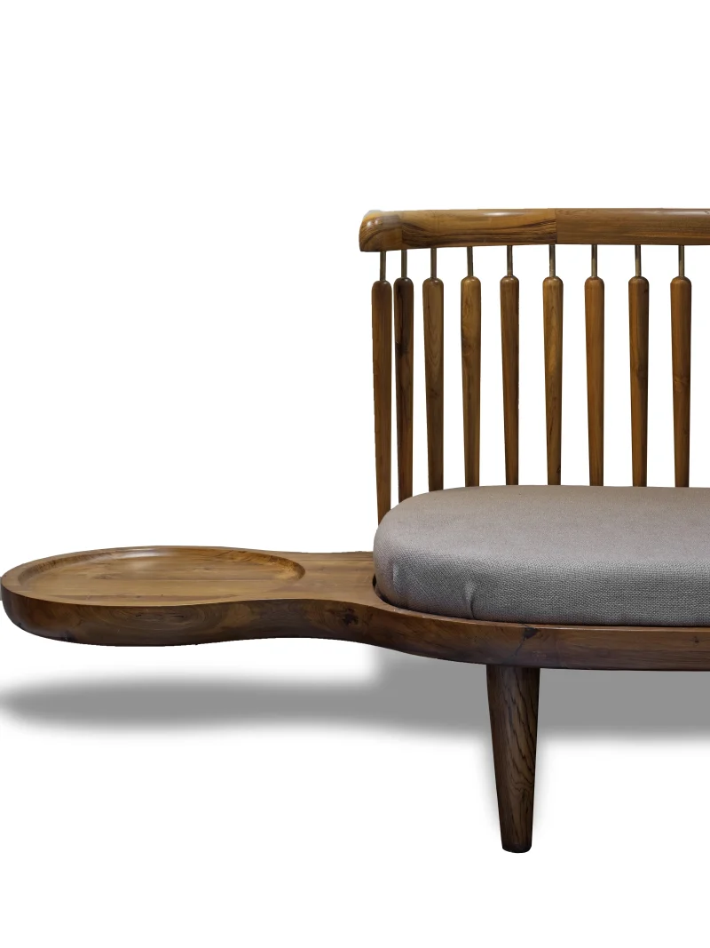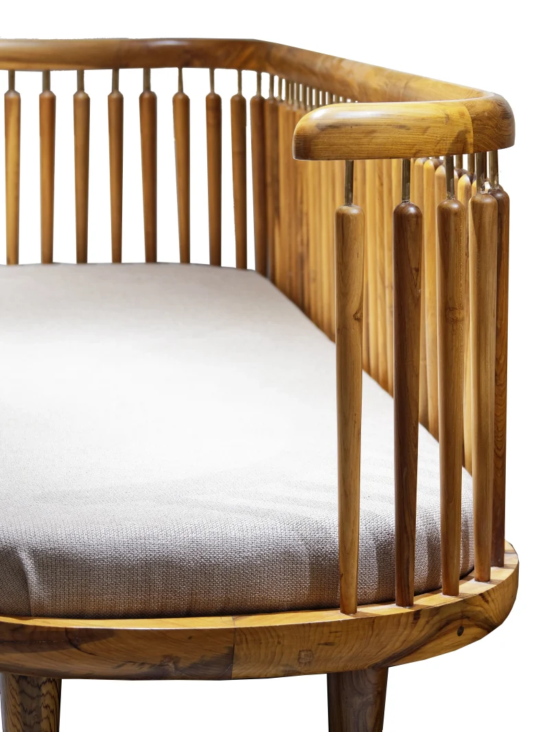 The nidrā koch by sāar is a meticulously crafted sofa, designed for a client seeking the ultimate blend of comfort and tradition—a space to indulge in restful afternoon naps. Its concept draws inspiration from the ancient Indian practice of “Nidra Mudra,” reflecting the cultural tradition of mid-day repose on couches.