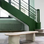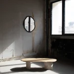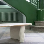 The Noa table is born from the encounter between clay and wood. Its chamotte stoneware legs, hand-shaped, converse through their complementary curves. The oak tabletop, also hand-carved, reveals itself like a pebble polished by sand. We also offer bespoke finishes, both in shades and dimensions, to ensure it perfectly adapts to each project.