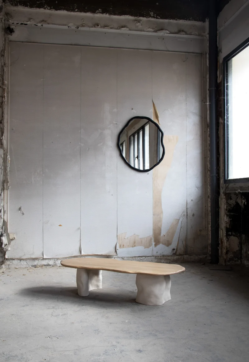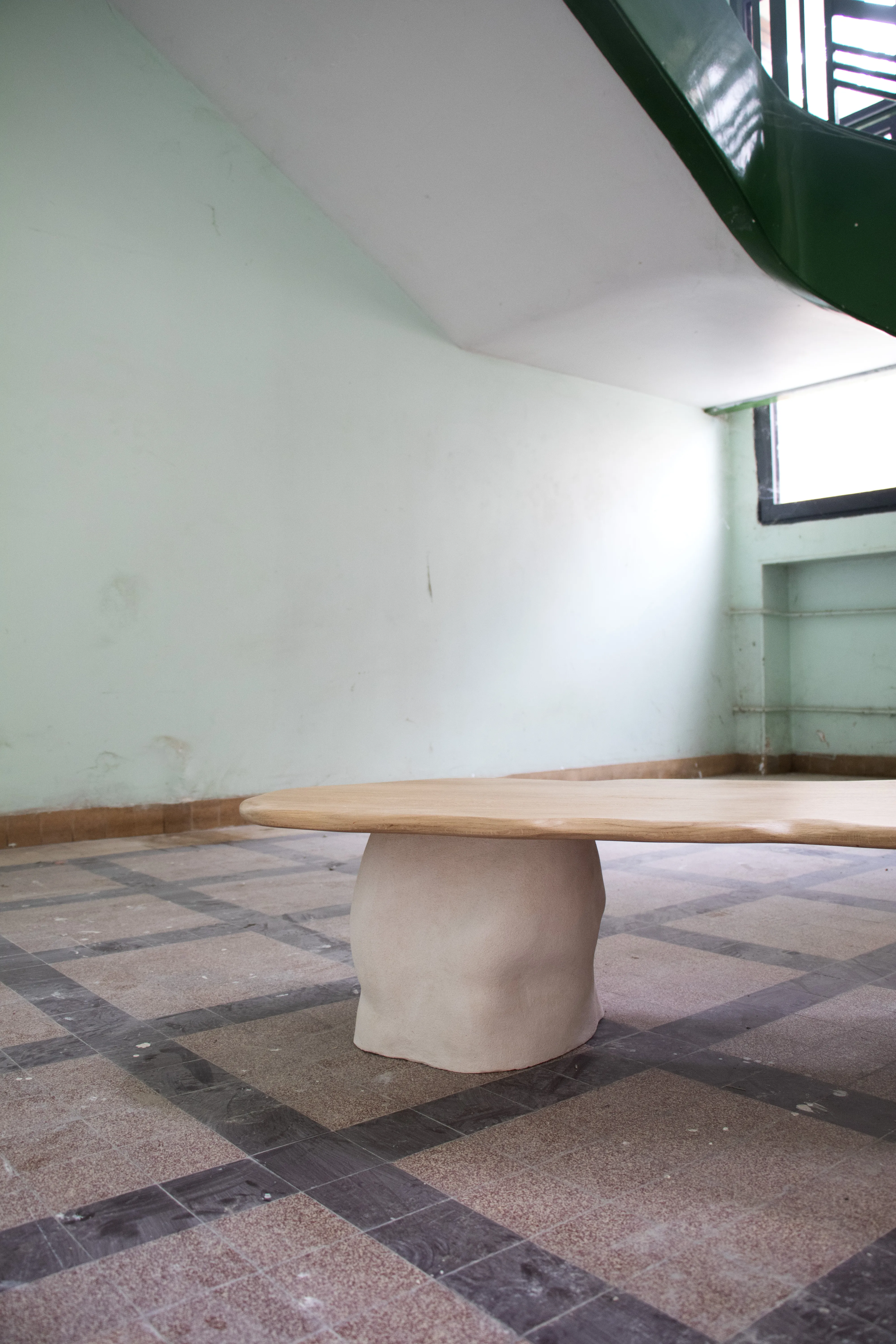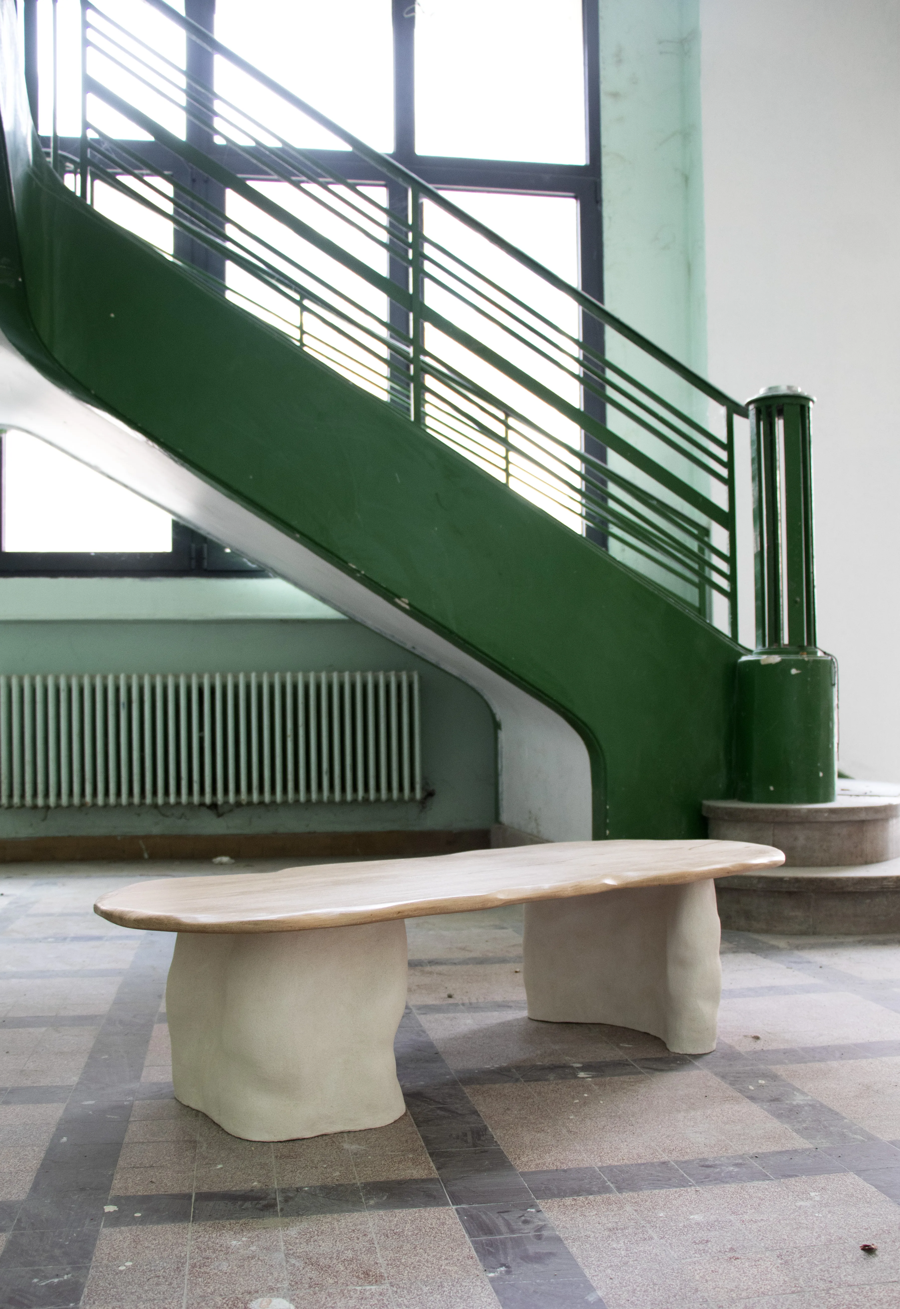 The Noa table is born from the encounter between clay and wood. Its chamotte stoneware legs, hand-shaped, converse through their complementary curves. The oak tabletop, also hand-carved, reveals itself like a pebble polished by sand. We also offer bespoke finishes, both in shades and dimensions, to ensure it perfectly adapts to each project.