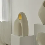 The natural motifs transformed by the artist into sculptural elements relate to the theme of home, a safe and private space where semi-darkness may linger or be illuminated by light. Nomad Ⅱ:02, with its streamlined figure, evokes associations with both bodily and zoomorphic shapes, simultaneously resembling a nest, a beehive, or a cave. The surface of this handcrafted ceramic piece is left in its natural state, allowing light to interact with it in various ways and create diverse effects. Nomad Ⅱ:02 is not merely an object but a symbol of a home filled with life and tranquility.
