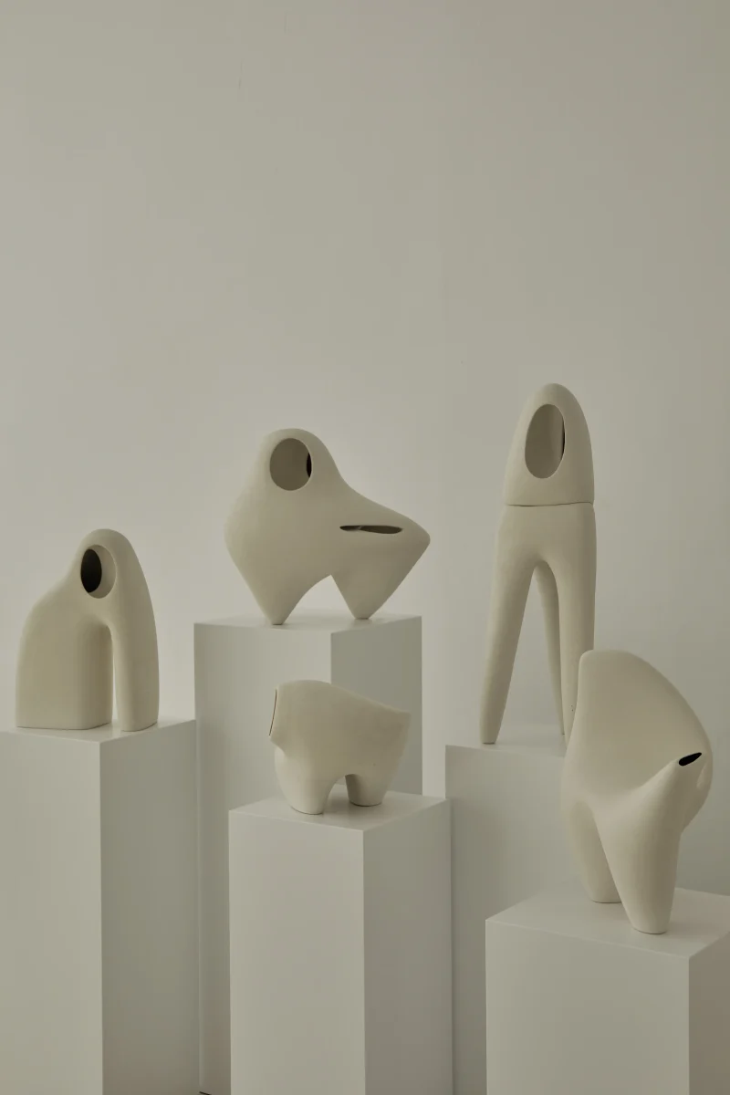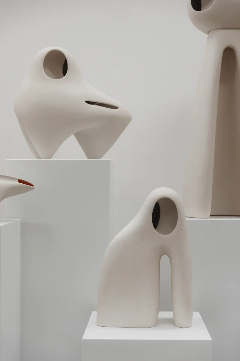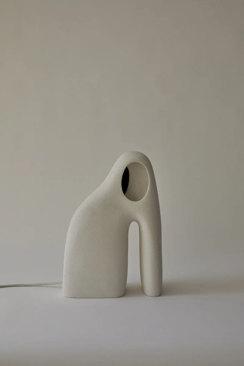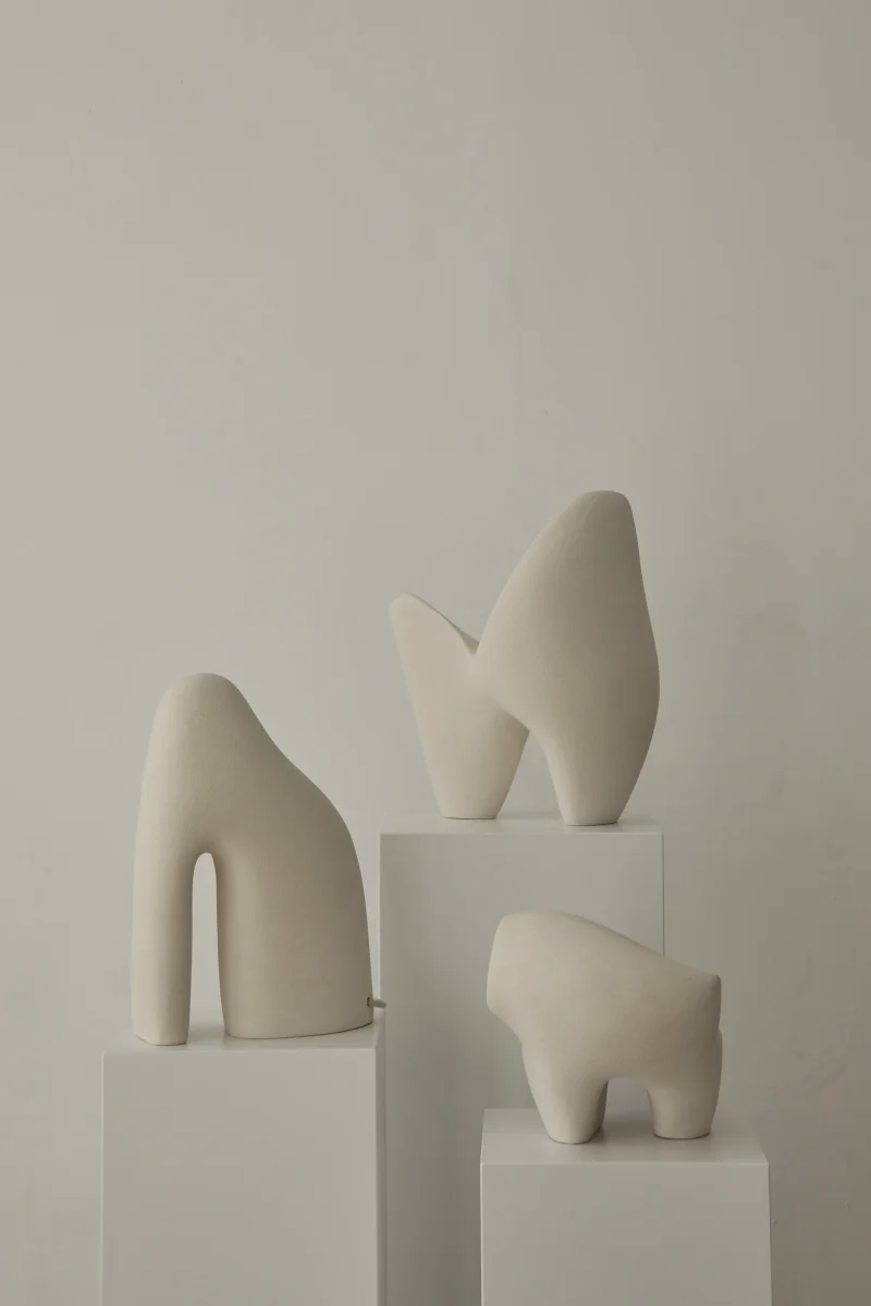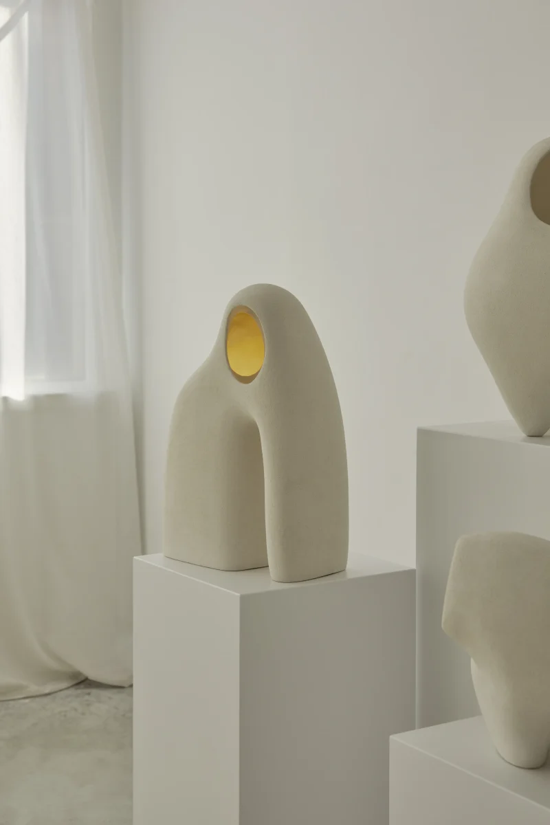 The natural motifs transformed by the artist into sculptural elements relate to the theme of home, a safe and private space where semi-darkness may linger or be illuminated by light. Nomad Ⅱ:02, with its streamlined figure, evokes associations with both bodily and zoomorphic shapes, simultaneously resembling a nest, a beehive, or a cave. The surface of this handcrafted ceramic piece is left in its natural state, allowing light to interact with it in various ways and create diverse effects. Nomad Ⅱ:02 is not merely an object but a symbol of a home filled with life and tranquility.
