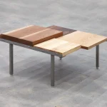 NONSTANDARD 2 exemplifies PRACTICE’s commitment to sustainability and material storytelling. Crafted from discarded wood scraps sourced from woodworking studios, this piece breathes new life into materials often overlooked. Utilizing a variety of woods, including oak, ash, and cedar, the design preserves the unique traces and marks left on the surfaces, celebrating their history and imperfections. NONSTANDARD 1 is a testament to PRACTICE’s ability to transform remnants into a functional, one-of-a-kind work of art.