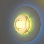 NUDE option: The central part emits blush pink shades, while the rear disk has a subtle blue hue. The luminaire also cast a radiant light-green glow on the wall.