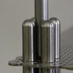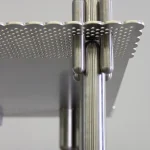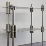 Nopper is a modular system for building a cupboard or a desk. The construction originated from research into plastic building toy blocks for children. The plastic parts with small studs can easily be attached to each other. This principle has been simplified by attaching four or more studs above and below a shelf and clamping a loose leg between them.