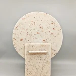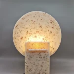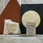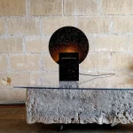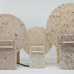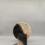 Monadre Lamp by Clémence Joséphine Touzet won the first prize of Métiers d’Art (arts and crafts) de France in 2024, due to its harmonic shapes and sustainable material. Inspired by the desire to create an ambient light with a sculptural quality. Composed of two square bases and two discs, the geometric shape modifies the lamp’s expression depending on its position. The Monadre lamp combines functionality and aesthetics to create a unique, versatile lamp. It is entirely composed of VEGETAL GLASS ® and for this collection of recycled Mother-of-Pearl. The production process starts with collecting shells- rubbish from local industries or local oyster farms and using recycled oyster or mussel shells instead of stones. Monadre is completely organic and handmade in France.