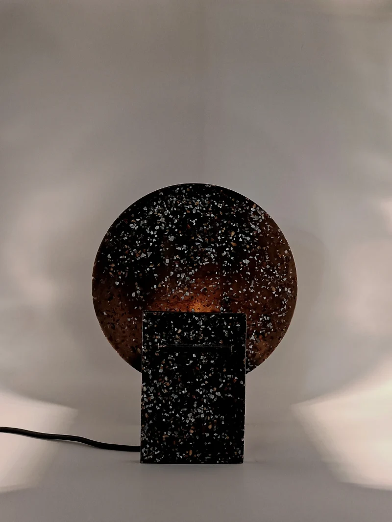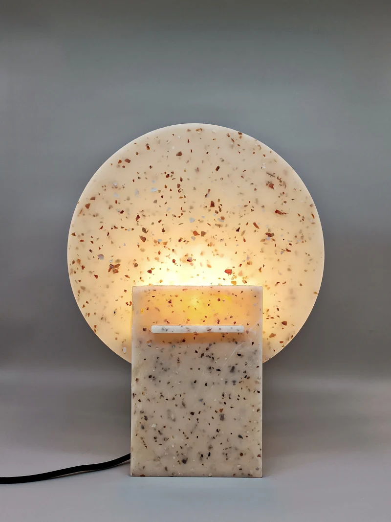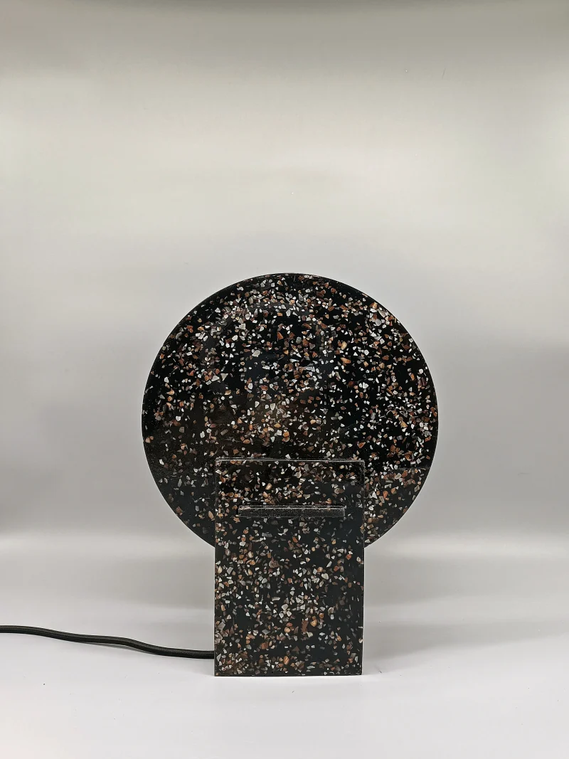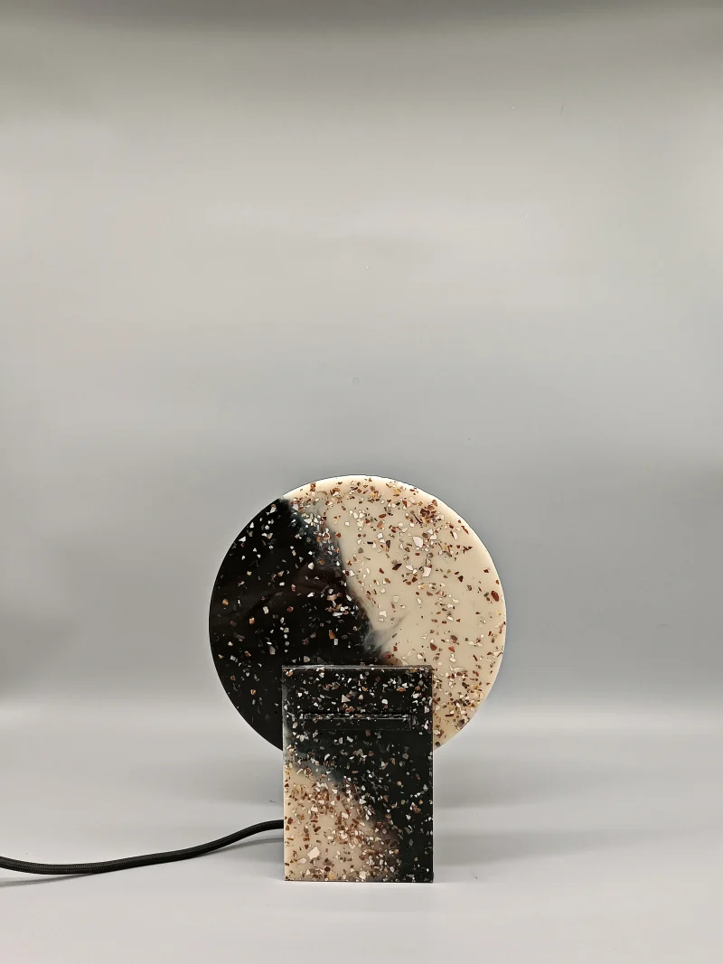 Monadre Lamp by Clémence Joséphine Touzet won the first prize of Métiers d’Art (arts and crafts) de France in 2024, due to its harmonic shapes and sustainable material. Inspired by the desire to create an ambient light with a sculptural quality. Composed of two square bases and two discs, the geometric shape modifies the lamp’s expression depending on its position. The Monadre lamp combines functionality and aesthetics to create a unique, versatile lamp. It is entirely composed of VEGETAL GLASS ® and for this collection of recycled Mother-of-Pearl. The production process starts with collecting shells- rubbish from local industries or local oyster farms and using recycled oyster or mussel shells instead of stones. Monadre is completely organic and handmade in France.