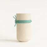 Introducing a vase that is not just a vessel but a narrative—inspired by the traditional molds used in slip-casting. Lucas Huillet, an artisan designer who effortlessly bridges the gap between disciplines, has once again played with references to conceive an object that narrates a story. This piece, created with meticulous precision, features two identical stoneware forms connected by a delicate line of polypropylene thread, suggesting unity, contrast, and the delicate balance of nature and craftsmanship.