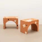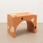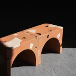 The Terrazzo Stool Nu by Assimply Studio is made from crushed recycled ceramic bricks, glass and recycled Beige Bahia marble aggregates.