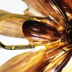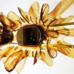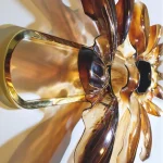 Born from a fascination with marine creatures and glass-forming research and experimentation, Nudi Brown by Whymsicals is the second in the Nudi series, exploring the overlapping of glass in space with reflections and refractions of color. The composition displays complete freedom to the glass petal-like edges, creating an illusion of frozen motion in space. Nudi Brown functions as a mirror and light feature.