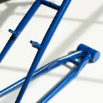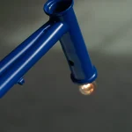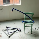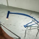 Initially, the designer kept the seat post intact, but eventually removed it, realising the steel twin tubes provided sufficient strength on their own. The idea to transform the bike into a lamp emerged as the designer began cutting away parts of the frame and visualizing the potential shape of a table lamp.