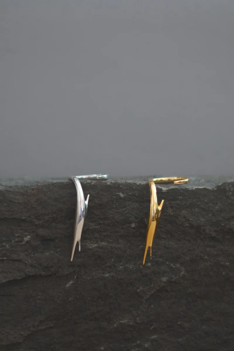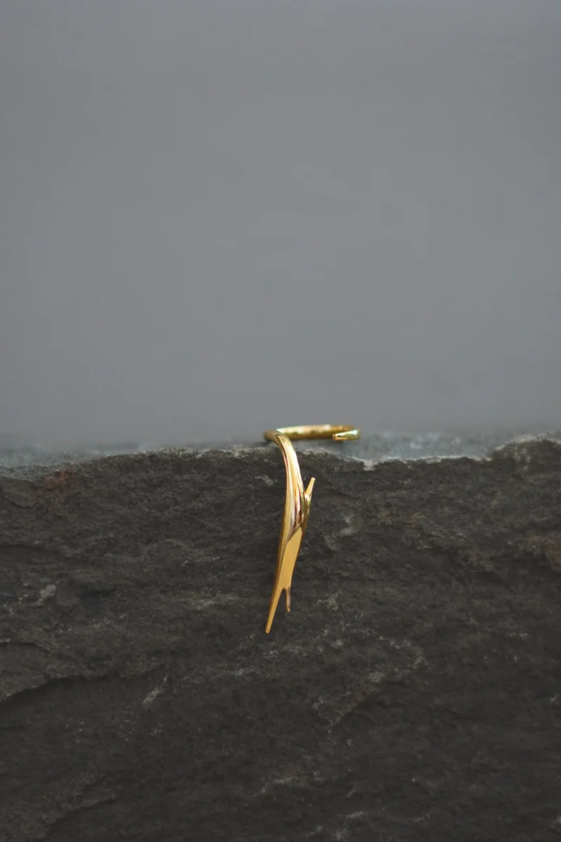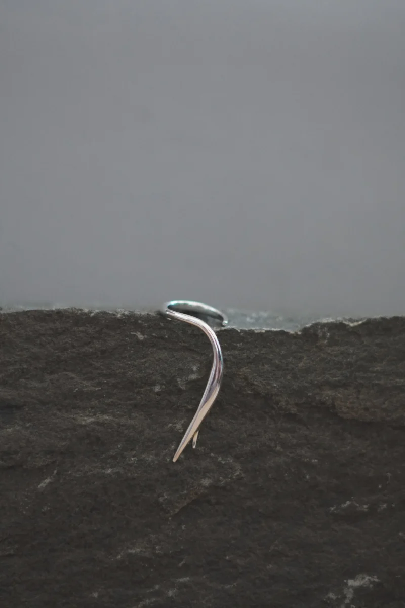 The Oak Thumb Ring, by “Studio Delta P” from the “Woodskin” Collection, inspired by the fluid, peeling layers of tree trunks shaped by time and nature. Sculpted with minimal, organic curves, it wraps gently around the thumb—like bark settling into its final form—becoming a quiet extension of the body.