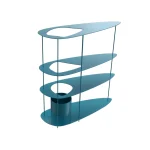 This piece is marked by sleek volumes and metal cylinders that rise to support a variety of slender surfaces, creating an architecture that welcomes life and greenery, echoing the essence of a natural oasis. Drawing inspiration from Mid-century modern design, OASI is not just a functional item but a statement of style.