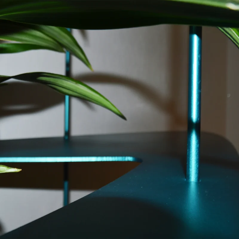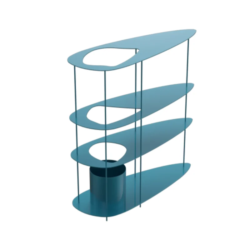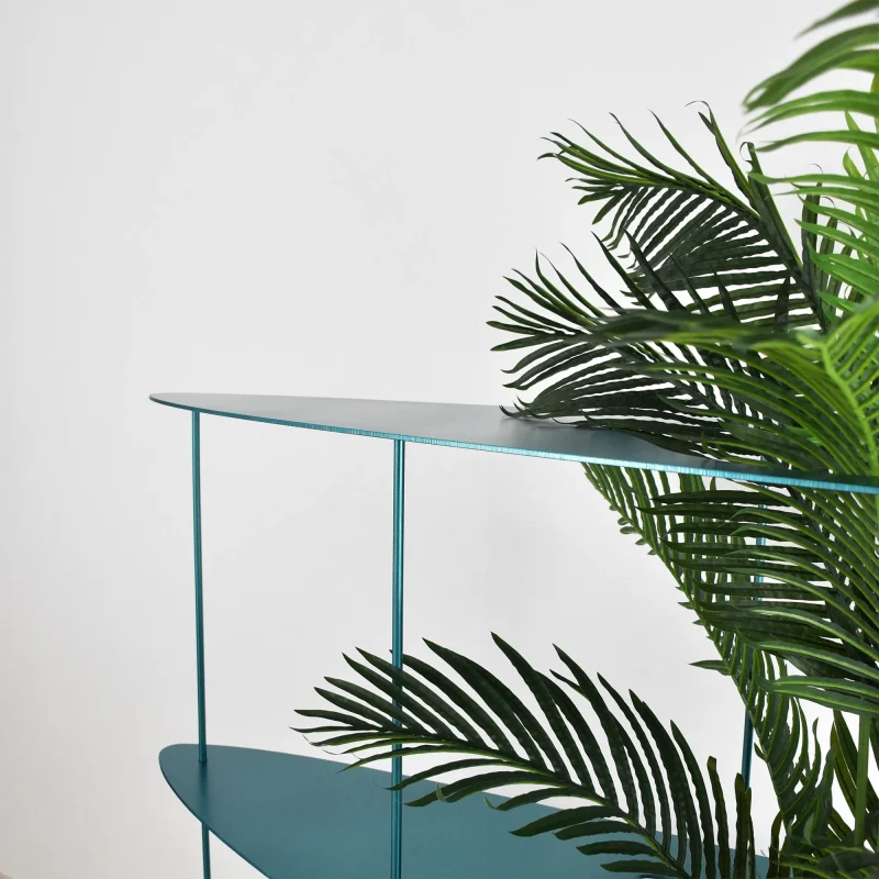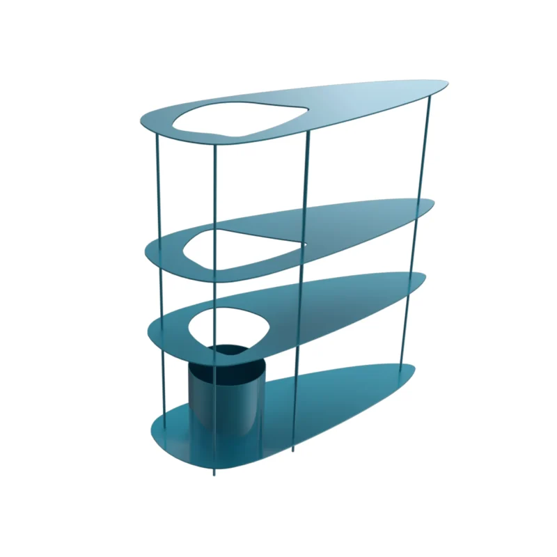 This piece is marked by sleek volumes and metal cylinders that rise to support a variety of slender surfaces, creating an architecture that welcomes life and greenery, echoing the essence of a natural oasis. Drawing inspiration from Mid-century modern design, OASI is not just a functional item but a statement of style.