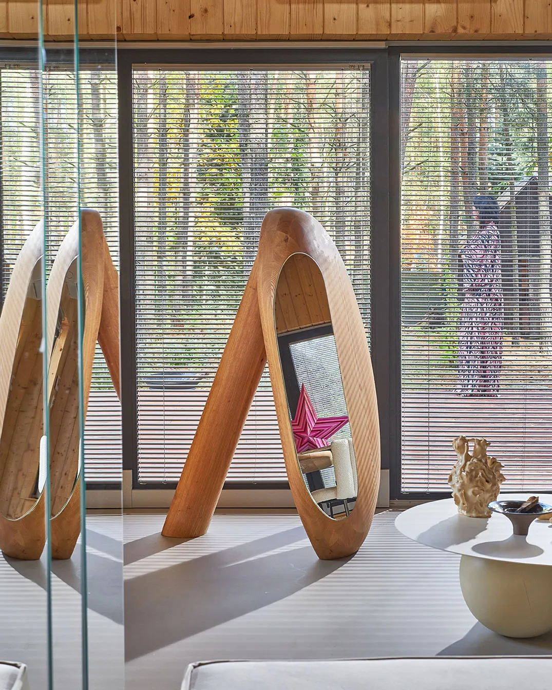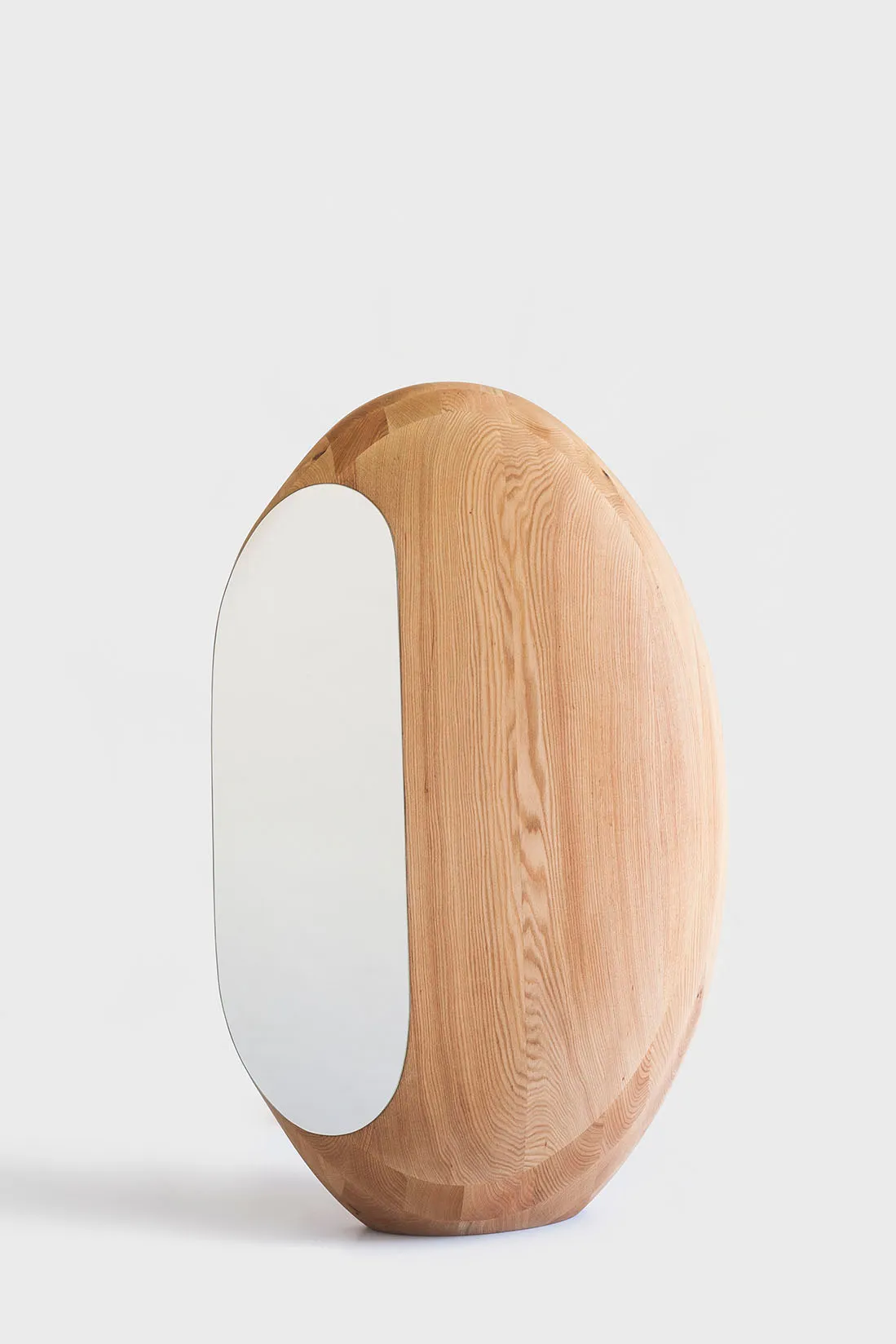 The object is entirely hand-carved from red oak wood and coated with natural linseed oil. Mirror — hand-cut and hand-sanded.The work is unique.