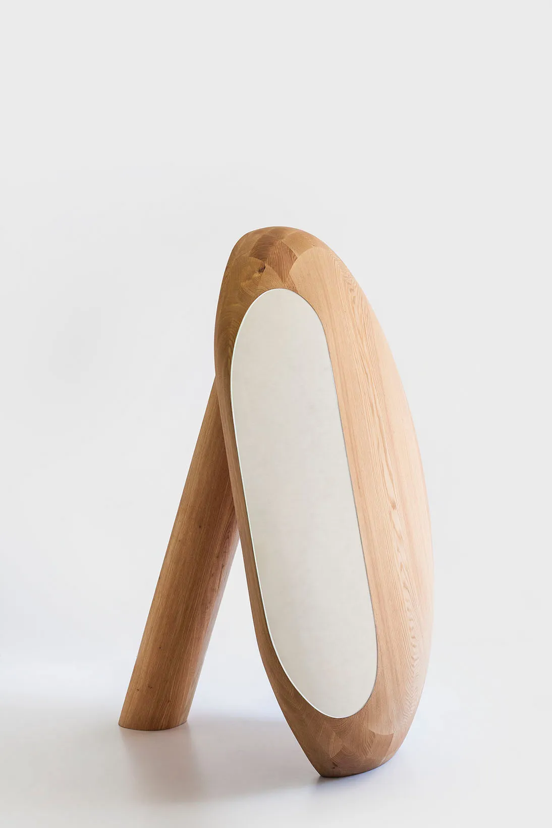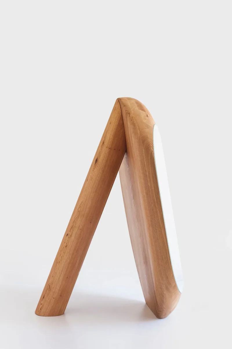 In this project, the artist challenges the notion of a functional object. A monumental and heavy wooden solid is juxtaposed with a small sheet of mirror, making the object acquire its function. However, due to the scale and proportions, both elements – the frame and the mirror — never fully achieve their function. With the mirror panel glued to the outside, the function of the frame is deconstructed and the frame becomes useless. Nevertheless, it takes the form of a monumental solid wood block, heavy and unwieldy.
