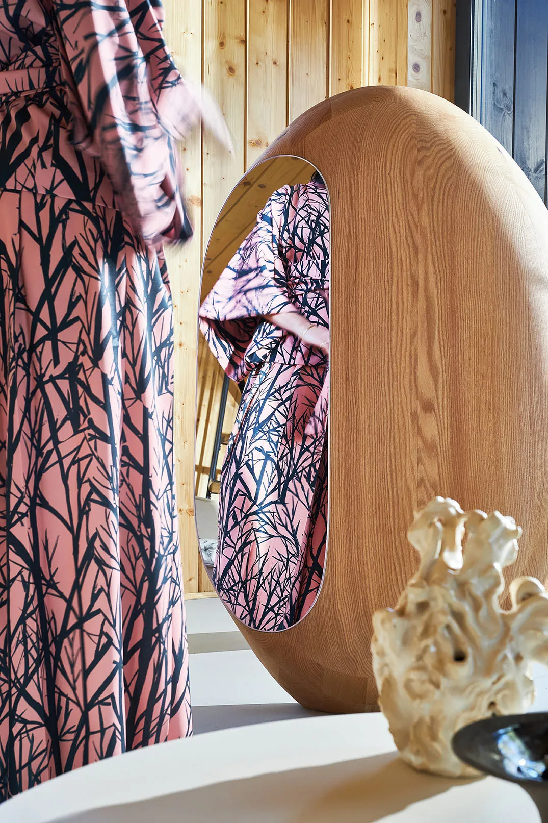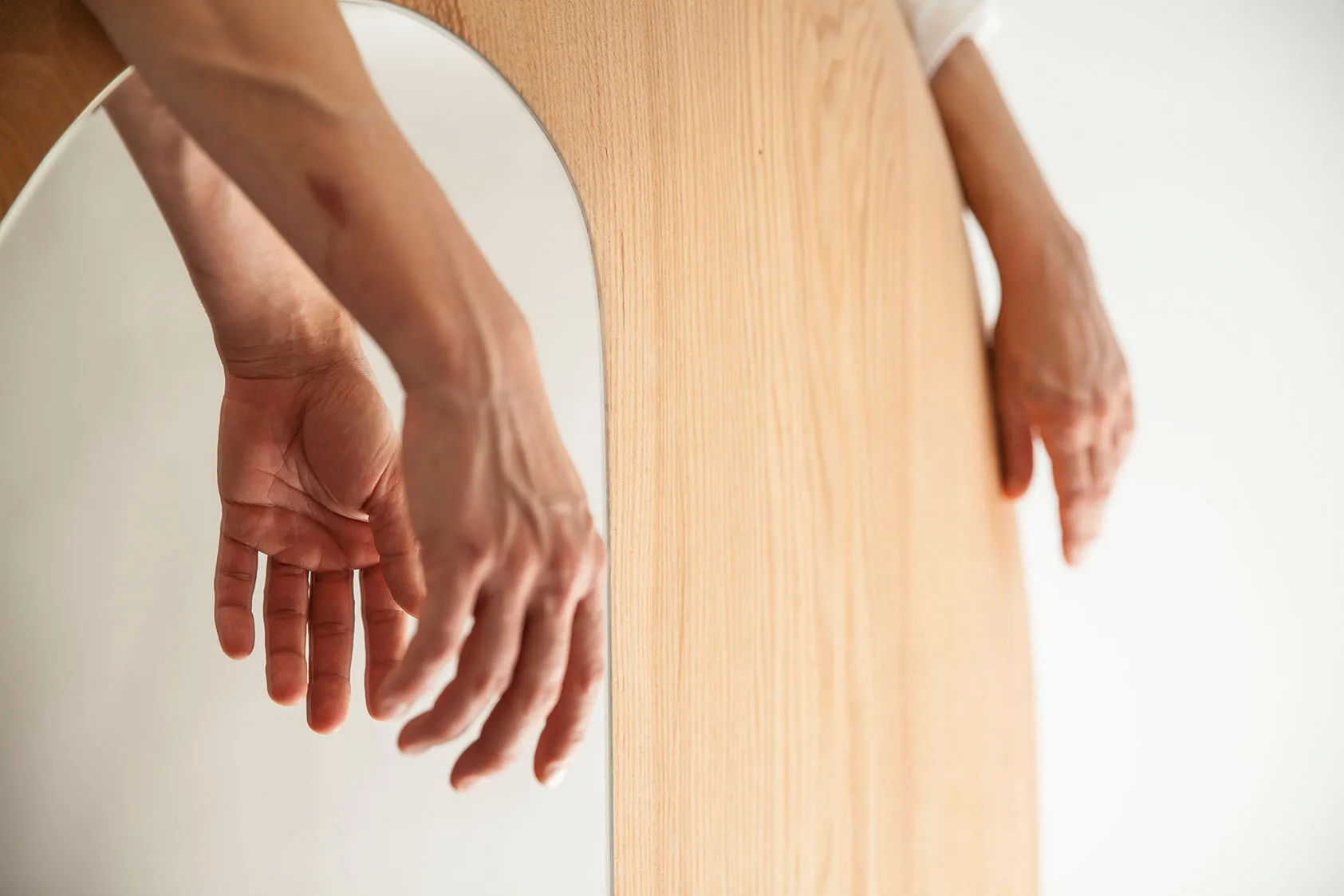 Clean the wood with a damp cloth, the mirror — with a soft microfibre cloth.