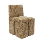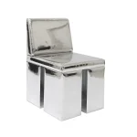 A massive chair by NG Design entirely upholstered in fabric. A mirror-upholstered chair combines functionality with a bold, reflective aesthetic. Its surface is covered in a mirrored fabric or material that creates a dazzling, almost futuristic effect. The upholstery captures and reflects light, making the chair appear to seamlessly blend with its surroundings while also standing out as a statement piece.