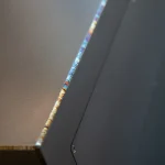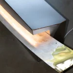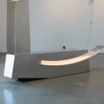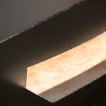 Light enters the space formed by the soft curves intersecting horizontally with the vertical surfaces from the overall shape.