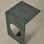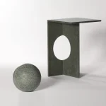 The Ola side table can be crafted from various types of marble or green diabase, a volcanic stone. Diabase is renowned for its durability and solid structure. It is sourced from the Alanya Demirtaş region in Turkey, where each rock features unique shapes and varying shades of green, reflecting the beauty of nature.