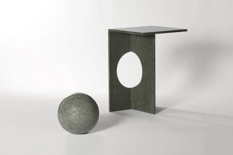 The Ola side table can be made from brushed or polished diabase stone upon request.