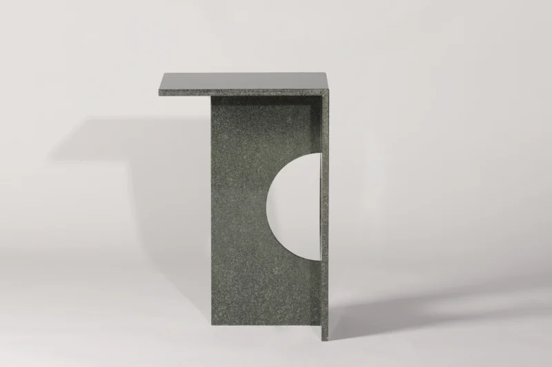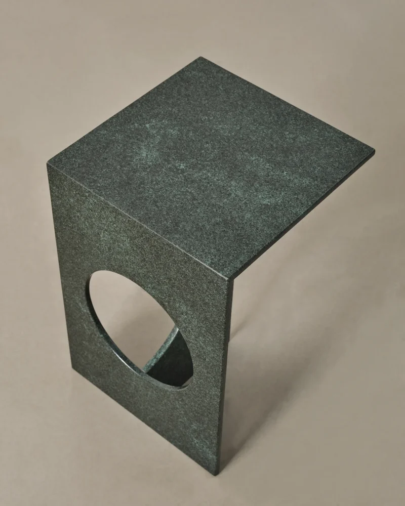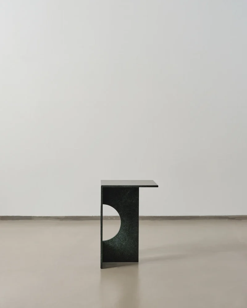 The minimalist and modern design of the Ola side table embodies the theory of solid and void. This theory suggests that the volumetric voids within objects are just as significant—if not more so—than the objects themselves. Ola exemplifies this concept as a minimal side table with a simple form, distinguished by the empty space within it. This void within the solid material not only defines its aesthetic but also makes the furniture lighter and more functional.