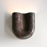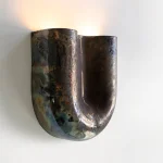 Onda, meaning “wave” in Portuguese, is inspired by organic modernism and Florida’s natural textures. arrived aliens blends clean, minimalist lines with surfaces shaped by the raku firing process. During firing, metal oxides react with flame and smoke, producing unpredictable variations — color shifts, metallic tones, and sometimes fine surface cracks from rapid cooling. These natural irregularities make each sconce one of a kind. Made in-house in Miami.