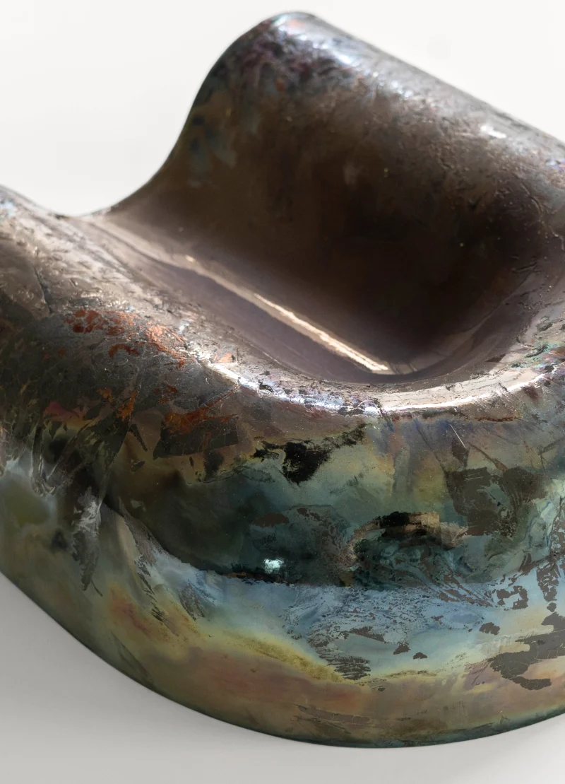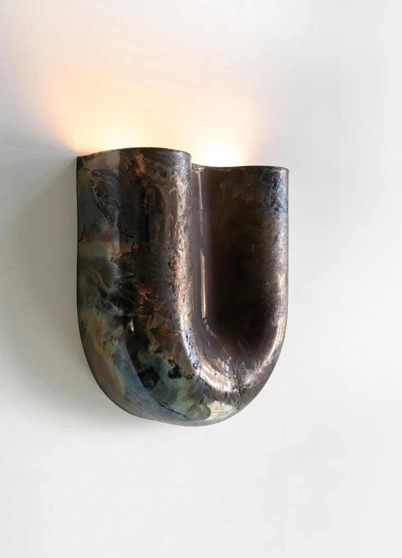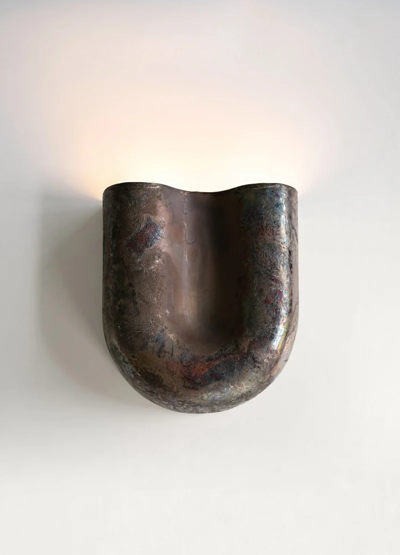 Onda, meaning “wave” in Portuguese, is inspired by organic modernism and Florida’s natural textures. arrived aliens blends clean, minimalist lines with surfaces shaped by the raku firing process. During firing, metal oxides react with flame and smoke, producing unpredictable variations — color shifts, metallic tones, and sometimes fine surface cracks from rapid cooling. These natural irregularities make each sconce one of a kind. Made in-house in Miami.